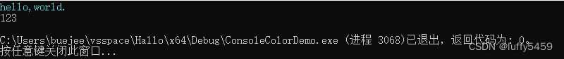 以上就是忐忑大船最近收集整理的关于c++改变控制台显示颜色的全部内容,更多相关c++改变控制台显示颜色内容请搜索靠谱客的其他文章。