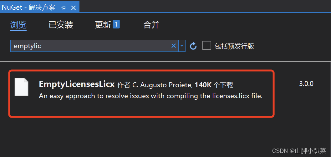 在“浏览”中搜索EmptyLicenseLicx并安装到本项目,即可解决问题。