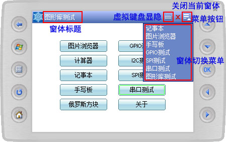 System.Windows.Form库支持多窗体,并且支持软键盘,所以考虑到窗体关闭、切换等操作,故引入了任务栏(和Windows Mobile的任务栏有些类似),相关功能如下图所示。