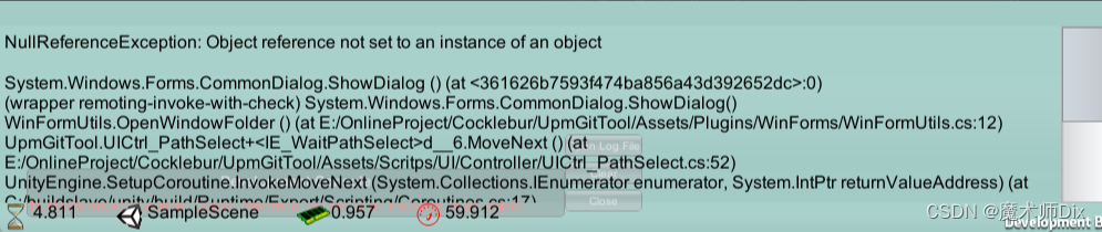 后面看到了有个人跟我一样的问题: unity使用 form.showDialog() 函数,打包后出现空指针错误 的解决方法_参宿_七的博客-CSDN博客需要实现一个unity打开文件/文件夹选择框,一开始使用:path = UnityEditor.EditorUtility.OpenFilePanel("Load Images of Directory", UnityEngine.Application.dataPath, extion);方法实现,但是这种方法只在编辑器里起作用,不能导出exe。于是使用:using System.Windows.Forms;OpenFileDialog dialog = new OpenFileDihttps://blog.csdn.net/Michaelia_hu/article/details/116015772 他提到一篇文章,说是需要修改引用的dll,我感觉这个思路挺靠谱的: