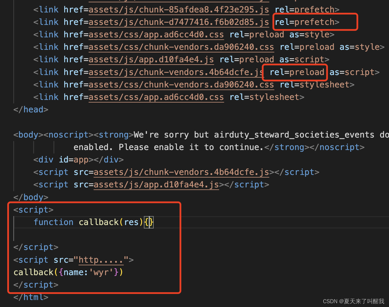 - 在VUE SSR生成的页面中,首页的资源均使用preload,而路由对应的资源,则使用prefetch。