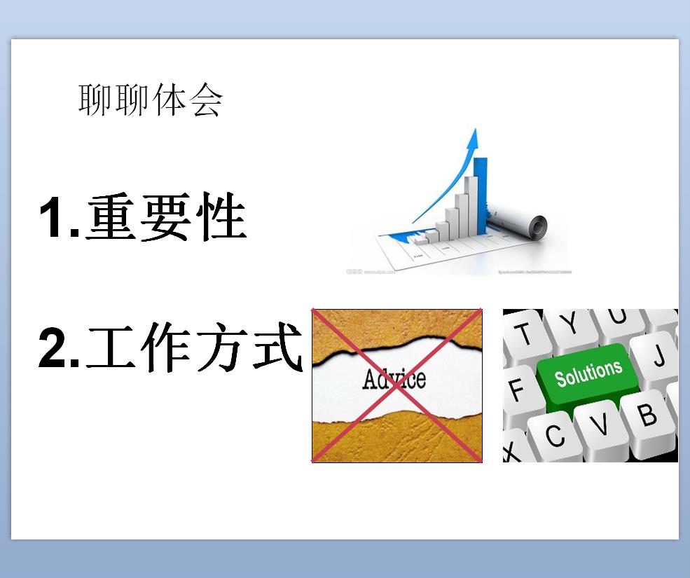 - 工作中建议少提建议多给可行性方案,同时进行技术预研而不是写个简单的helloworld。