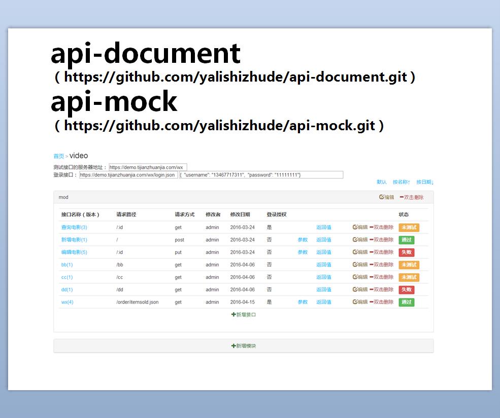 这就是现在我们项目上用的文档服务器和mock服务器,基于MEAN技术实现的服务器,基本功能: