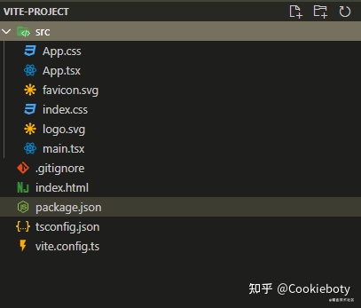 如上图,选择了 react-ts 预设模板,如果出现下图一样的工程