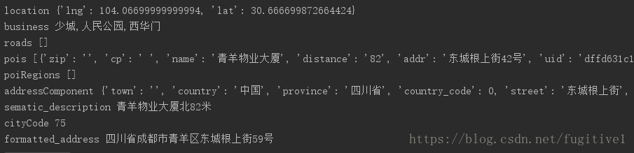 注意到上图中,只能看到,四川省成都市这一很大范围的,而其中的"street"等字段查询出来是空的。也就是说,只能查询到一个大概的范围。