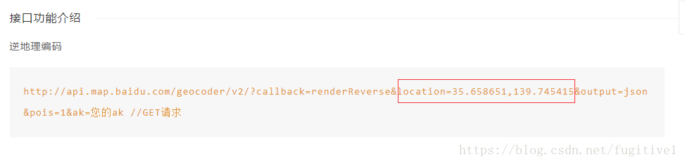如下图,假设我们已经获取到经纬度了,按照API上的规则来说,location参数后面的就是经纬度。根据经纬度,我们能查到详细地址。