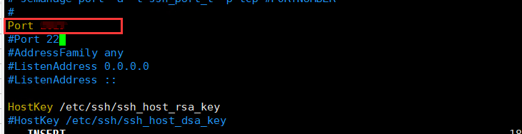 首先就是众所周知的,安装了SSH服务的linux机器,其配置文件存储在 /etc/ssh/sshd_config 中,vim 编辑该文本可见 默认 Port 22 是注释掉(#)的状态,此时,选择直接在上一行新增一个端口号,效果如下(马赛克部分为自定义远程端口号):