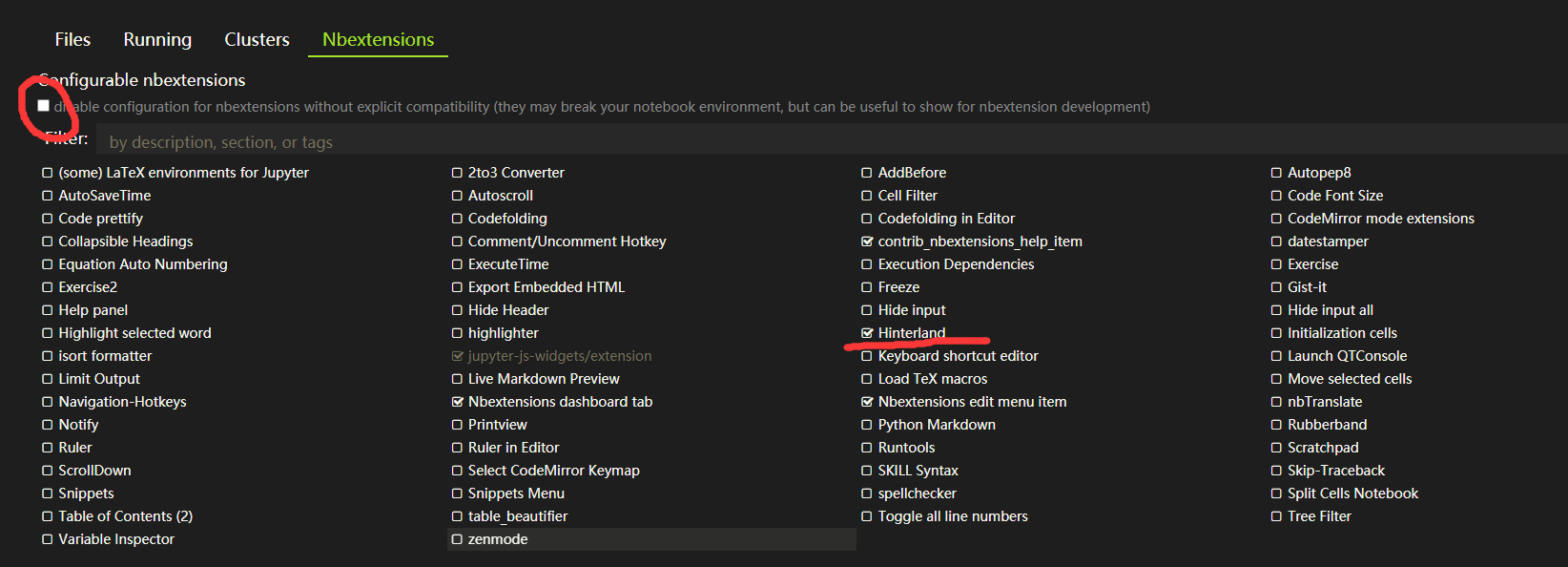 pip install jupyter_contrib_nbextensions -i https://pypi.tuna.tsinghua.edu.cn/simple jupyter nbextensions_configurator enable --user步骤2:打开notebook查看是否出现Nbextensions