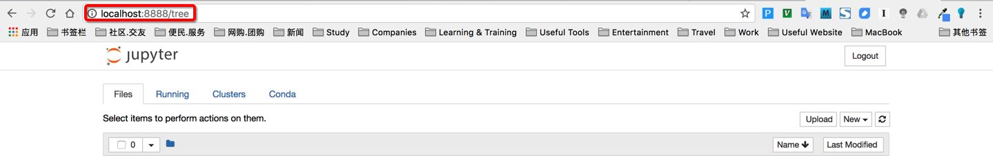 浏览器地址栏中默认地将会显示:http://localhost:8888。其中,“localhost”指的是本机,“8888”则是端口号。如果你同时启动了多个Jupyter Notebook,由于默认端口“8888”被占用,因此地址栏中的数字将从“8888”起,每多启动一个Jupyter Notebook数字就加1,如“8889”、“8890”……