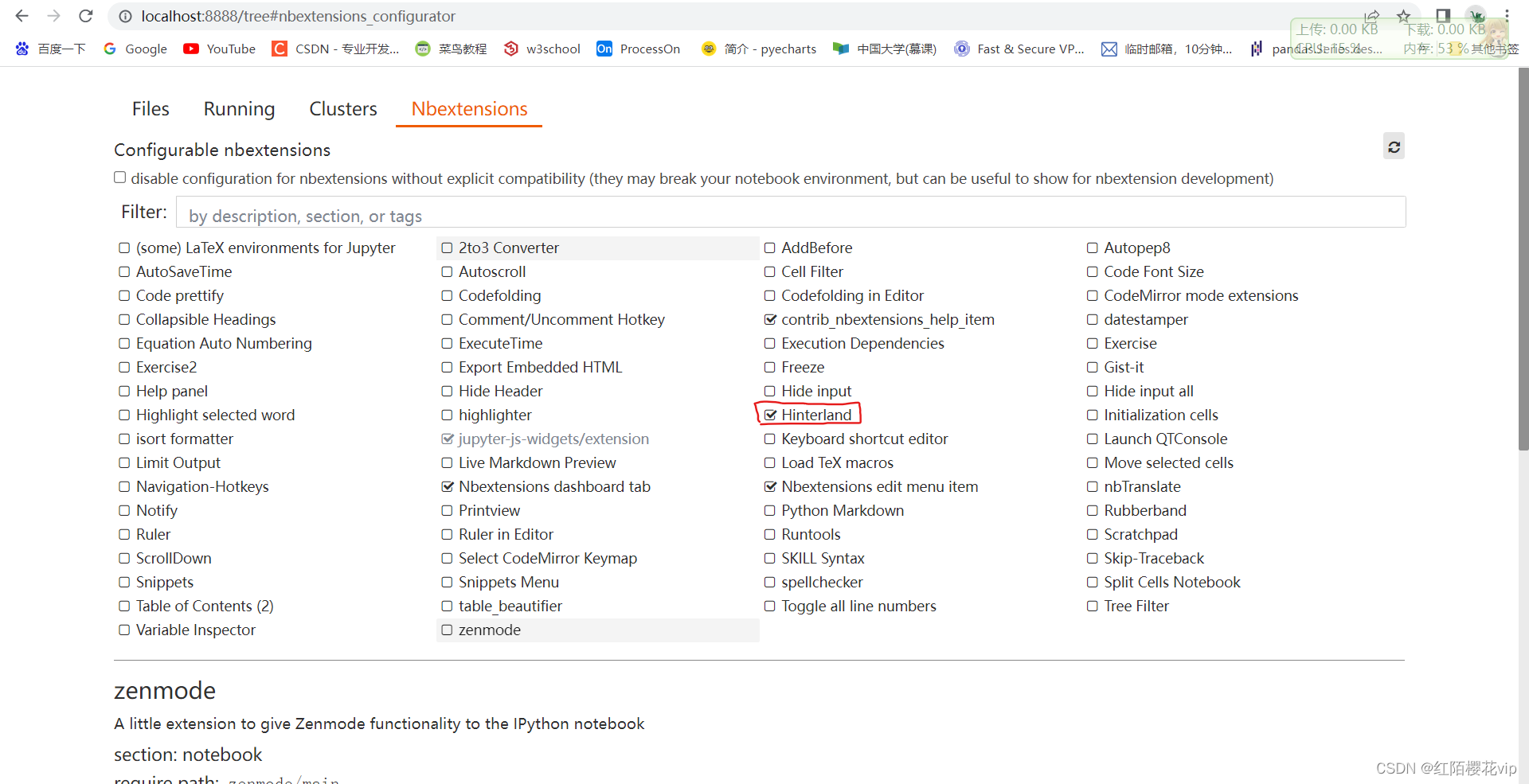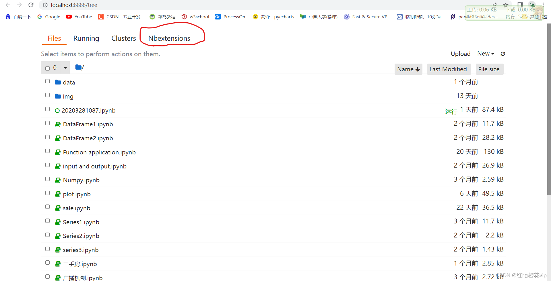 2、稍微等待一下,执行成功后会在http://localhost:8888/tree出现Nbextensions。