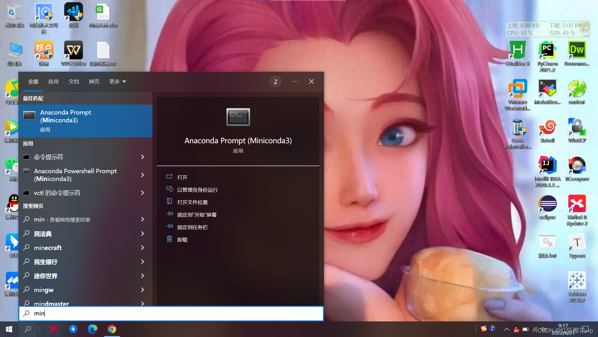 1、电脑上搜索“Anaconda Prompt (Miniconda3)”或者在开始菜单找到运行它,
