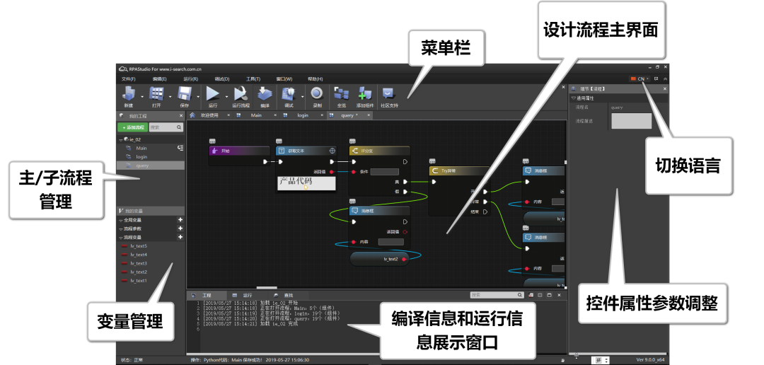 RPA作为人工智能领域的的先进工具,其底层设计是Python语言,支持拖拉拽&可视化方式进行流程设计。让更多编程小白也能轻松设计出流程。