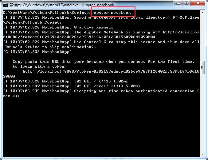 D:SoftWarePythonPython36Scripts>jupyter notebook