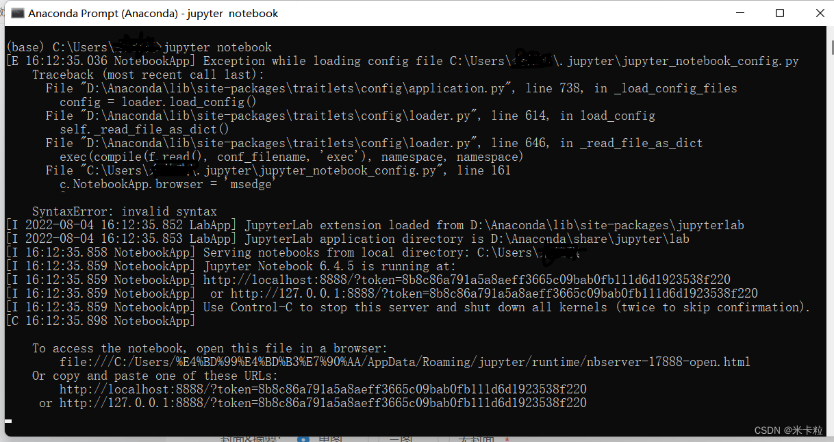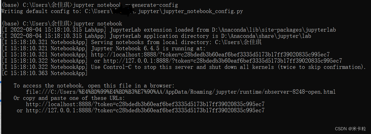 参考来源Jupyter notebook不自动弹出网页解决办法_海北0227的博客-CSDN博客