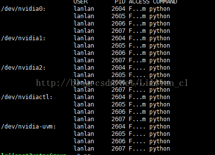 用 fuser -v /dev/nvidia* 可以显示如下 top 不会显示的进程
