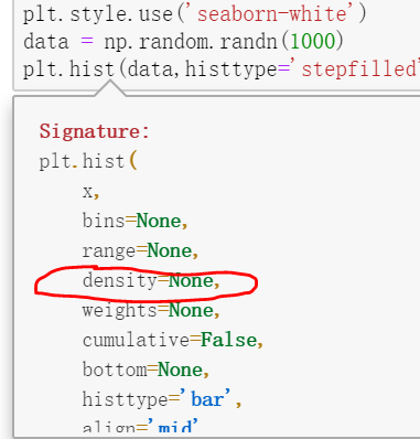 matplotlib.pyplot中绘制直方图,函数hist()参数很多,功能很多。用到的时候,不免忘记了有哪些功能、各个参数代表什么意思。