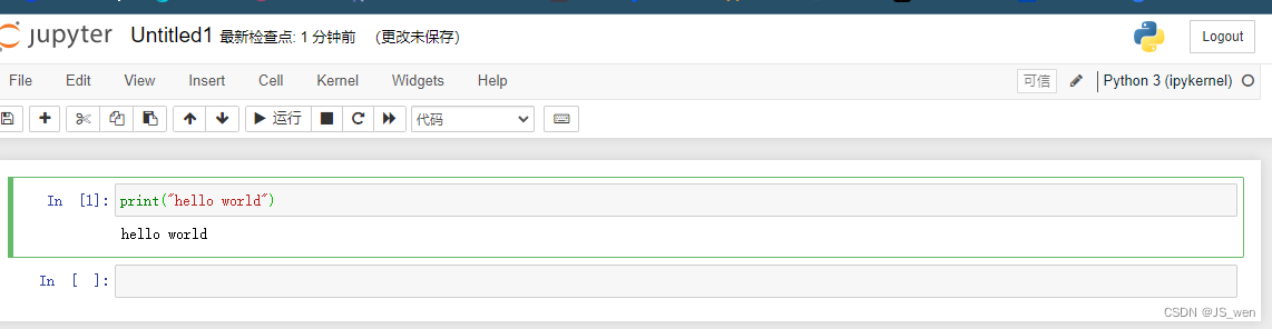 2.页面跳转到浏览器,第一步认识jupyter notebook界面按钮