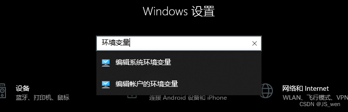 ③添加环境变量:win10系统的话,win键-设置-搜索“环境变量”-点击“编辑系统变量”