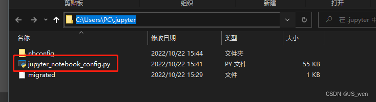 4.复制图上的路径,找到jupyter_notebook_config.py(方便方法:安装everything直接搜索:.jupyter,直达文件夹)