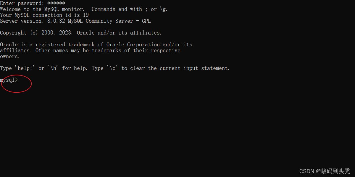 从开始菜单中打开安装完成的MySQL客户端命令窗口