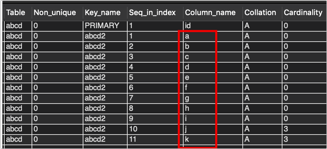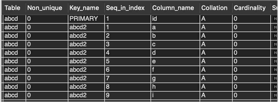 show index from aaa_bbb_123.abcd;