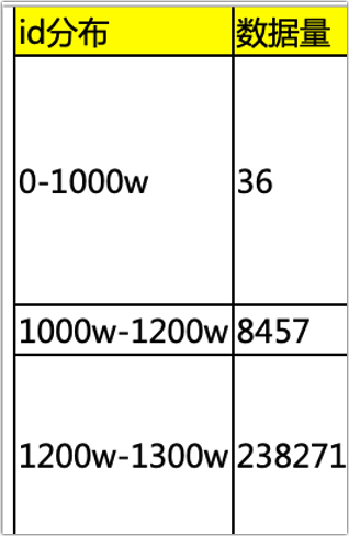 然后我统计了一下各个id段数据的分布情况,结果如下:
