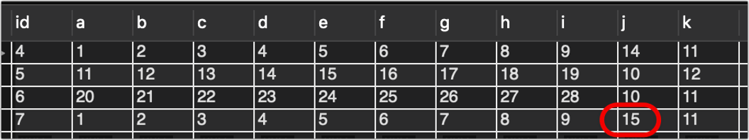 红色的数据,除了j为13,其他的和绿色的一模一样,业务说因为j和k是会手动修改的,但是明明Excel表已经没有j=10这条数了,数据库里却还有。