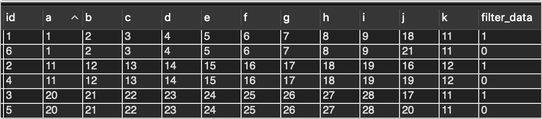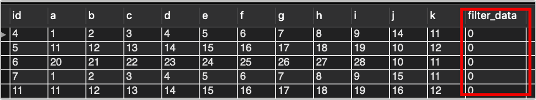 用a排序来讲一下,可以看到,旧数据全被打上了1,以后直接查filter_data =0的数据即可。