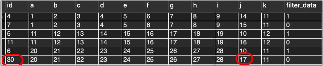 在做这一步之前,需要把索引加回来,也就是j,k字段也要加入索引,否则不会有重复的数据。