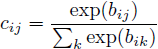 是由迭代动态路由过程决定的耦合系数。胶囊i和高一层的所有胶囊间的耦合系数总和为1,并且是由“路由softmax”决定,该“路由softmax”初始逻辑