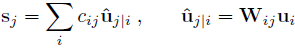 乘以一个低一层的胶囊的输出![]()