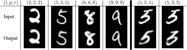我们的3层CapsNet模型从乱写的MultiMNIST训练数据上训练,比我们的基线卷积模型实现了更高的测试分类精确度。在高度重叠的数字对上,我们和Ba等人实现了同为5.0%的分类错误率,而Ba等人[2014]连续的注意模型(sequentialattention model)实现了一个更加简单的任务,即不重叠的任务(我们的情况是两个数字的盒子的80%的重叠,而Ba等人[2014]等人<4%)。在测试图像熵,测试集中的一对图像所组成的那些图像,我们将两个最活跃的数字胶囊最为胶囊网络产生的分类。在重建过程中,我们一次选择一个数字,使用选定的苏子胶囊的激活向量来重建选定的数字图像(由于我们用它来产生了一个合成图像,所以我们知道这个图像)。我们MNIST模型的唯一不同是我们将学习速率的衰减阶段增大了10倍,因为我们的训练集更大。