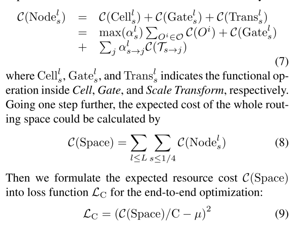 因此,在推理过程中,动态路由将cut out 无用的路径和cell 。我们发现 F L O P m a x FLOP_{max} FLOPmax和 F L O P m i n FLOP_{min} FLOPmin之间的差距相对较小(10%) ,这可以归因于预算约束的作用。实际上,我们也尝试了不同类型的变异系数,以扩大差距,但发现效果不佳。