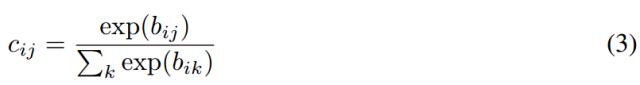 其中 c_ij 为耦合系数(coupling coefficients),该系数由迭代的动态路由选择过程确定。