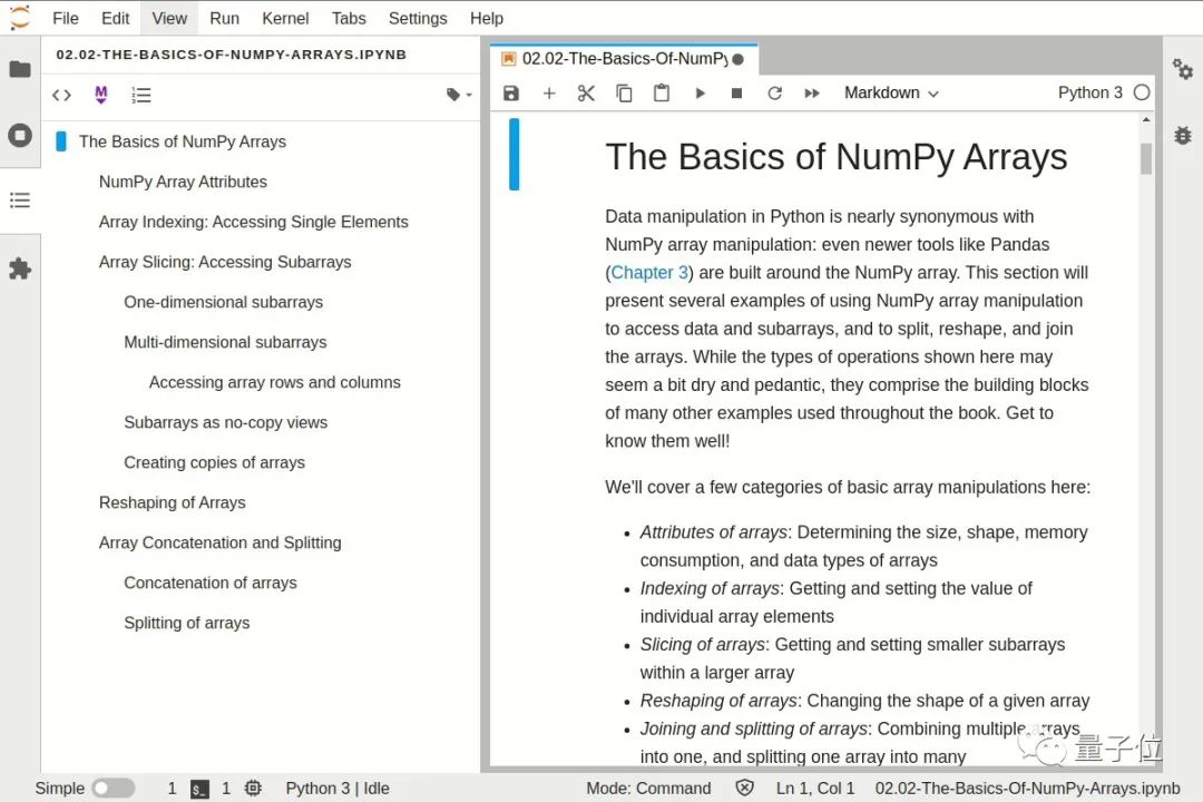 目录扩展现在也随JupyterLab一起默认提供。有了它,就可以轻松查看和浏览文档的结构。