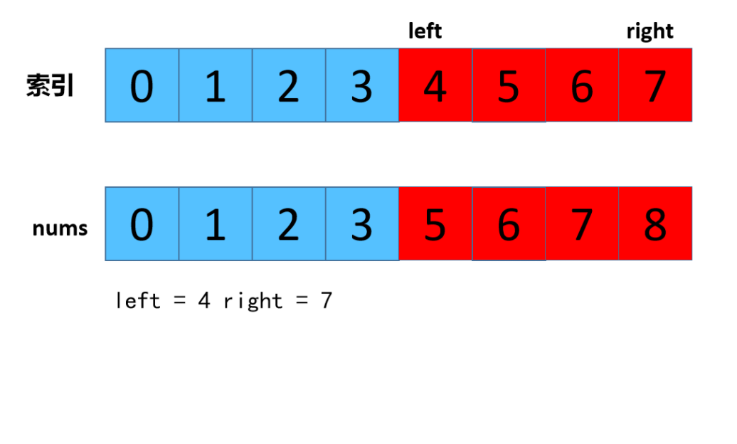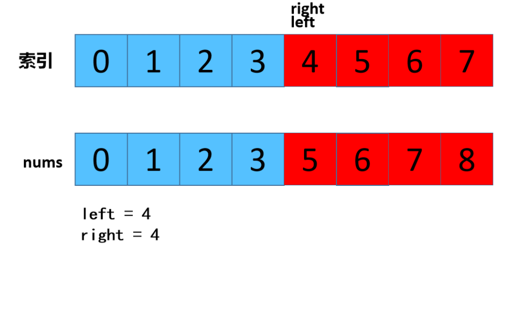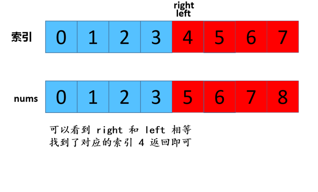 7.当left指向了右边数组的第一个元素 right指向了做数组的最后一个元素则直接返回left。