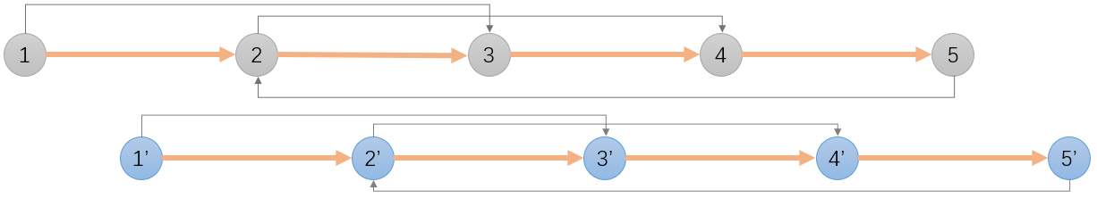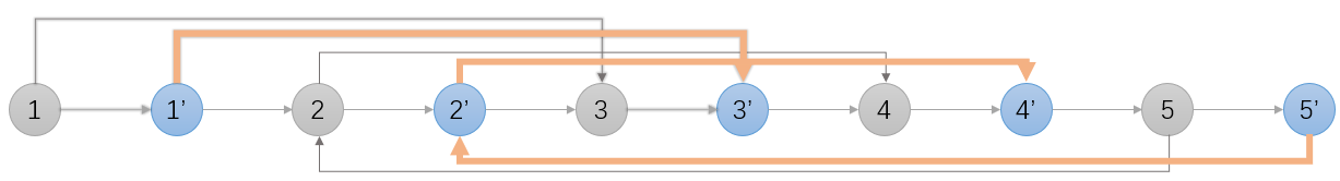 第 1 步:复制每一个节点插入在自己的后面;