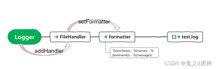 - logger与格式器是一对多的关系,一个logger可以添加多个格式器(handler);