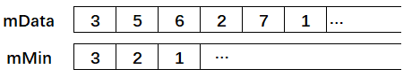 因为每层都有返回当前情况下的最小值,所以每次存储一个值,就需要更新(或者确认)当前最小栈的最小值。所以考虑使用两个普通栈(std::stack)来实现。一个stack<int> mData 存储数据,一个stack<int> mMin 存储当前状态下的最小值。在push入栈时,比较当前值和当前最小值那个更小,若当前值更小,则将当前值加入mMin 栈,否则,将当前最小值再次加入 mMin 栈 (可改进点)。以便在pop时,mData每弹出一个元素, mMin就弹出一个元素。代码实现如下。