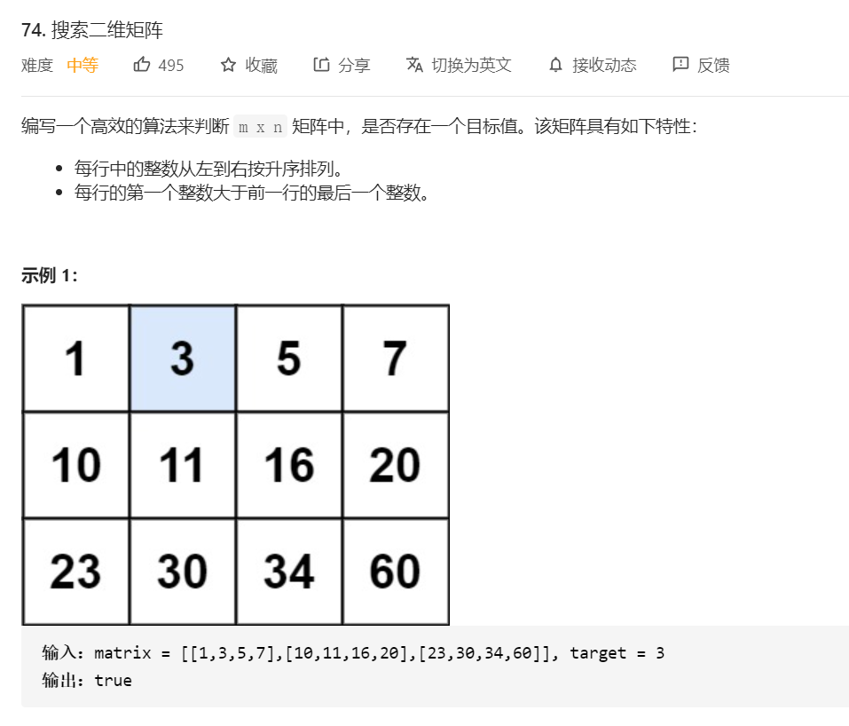 200道大数据面试常考Leetcode算法题 (二分查找篇)74-搜索二维矩阵