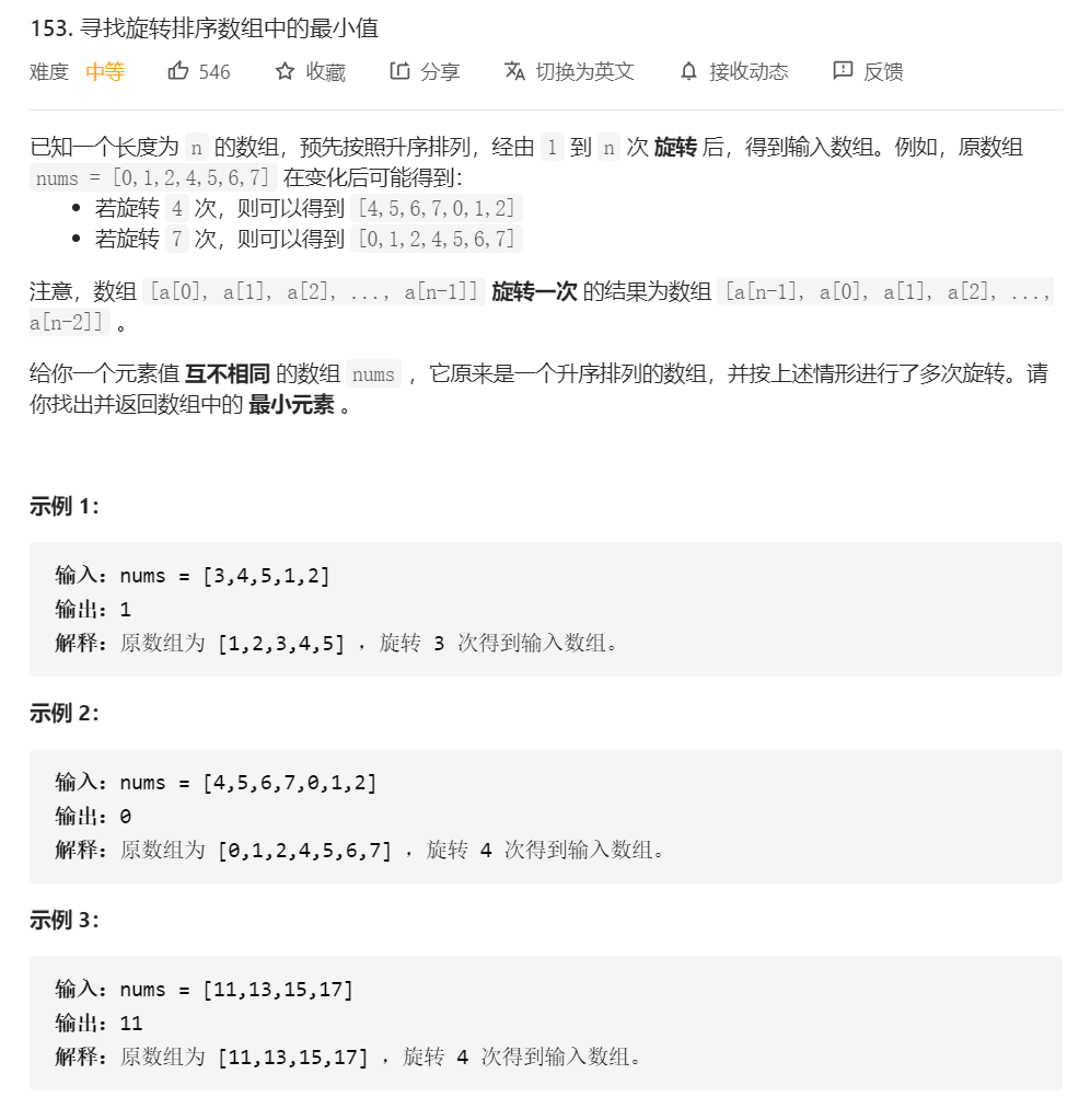 200道大数据面试常考Leetcode算法题 (二分查找篇)153-寻找旋转排序数组中的最小值
