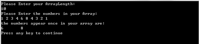 81 cout<<"the numbers appear once in your array are:"<<endl;