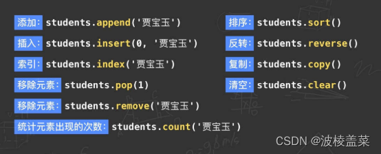 对列表的操作,还有统计、排序、反转、复制、清空等