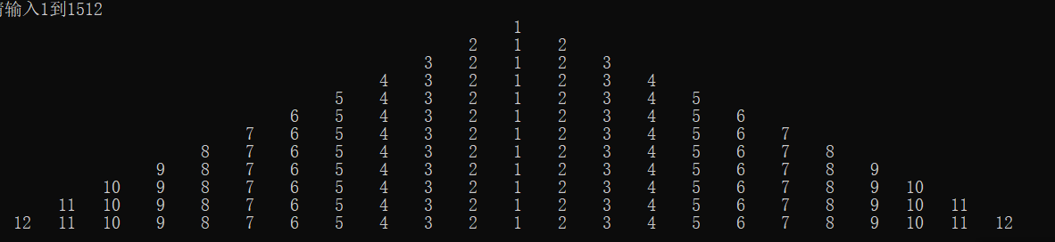 随意输入1到15的整数数字(层数),然后显示一个数字金字塔
