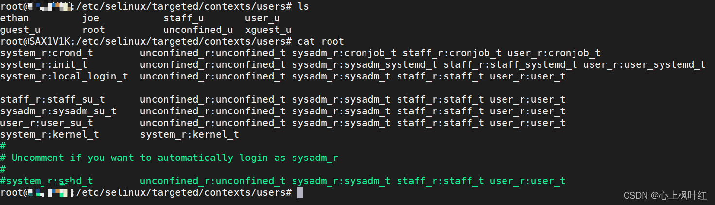 以上就是务实烤鸡最近收集整理的关于SELinux,无semanage,Linux user到SELinux user的映射的全部内容,更多相关SELinux,无semanage,Linux内容请搜索靠谱客的其他文章。