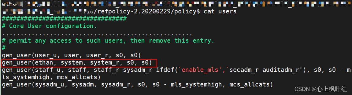2.在refpolicy-2.20200229/policy/users源码中添加对应的gen_user规则。