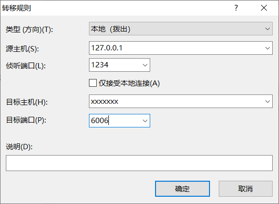 注意这一步选择的本地侦听端口不能与第二步中的有所冲突,否则会导致连接失败。